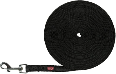 De Trixie Hondenriem Sleeplijn Met Rubber Bekleed Zwart 5 m x 1,5 cm is een sleeplijn bekleed met rubber voor meer grip en bescherming tegen weersinvloeden. Door deze combinatie en de lengte van 10 meter kun je jouw hond in elke situatie en elk seizoen meer bewegingsvrijheid geven. Door de bekleding met rubber is de lijn gemakkelijk te reinigen. De lijn is uitgevoerd zonder handlus en heeft een extra oogje om een hondenpenning of flasher aan te bevestigen.