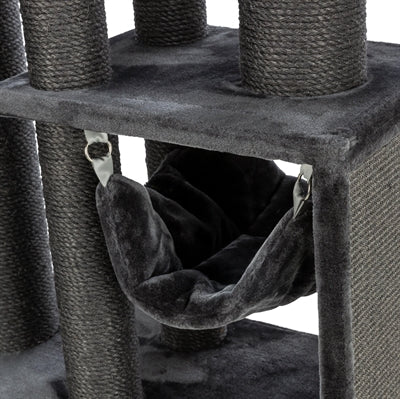 De zijwand is uitgerust met een groot sisal kraboppervlak, ideaal voor het onderhouden van de nagels van jouw kat. Het mandje met wendbaar kussen biedt een gezellige plek om te rusten en kan eenvoudig met de hand gewassen worden. De afneembare hangmat is gevoerd en doorgestikt voor extra comfort, en kan ook gemakkelijk met de hand gewassen worden, zodat jouw kat altijd een schone plek heeft om te relaxen. Gemaakt van hoogwaardig sisal (ø 7 mm) en pluche (400 g/m²).