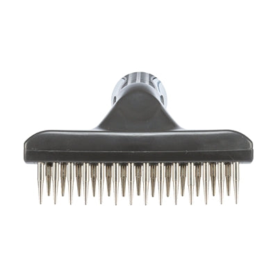 Deze metaalkam is door de dubbele rij vertandingen geschikt voor een nog intensievere verzorging van onderwol van honden met lang haar.